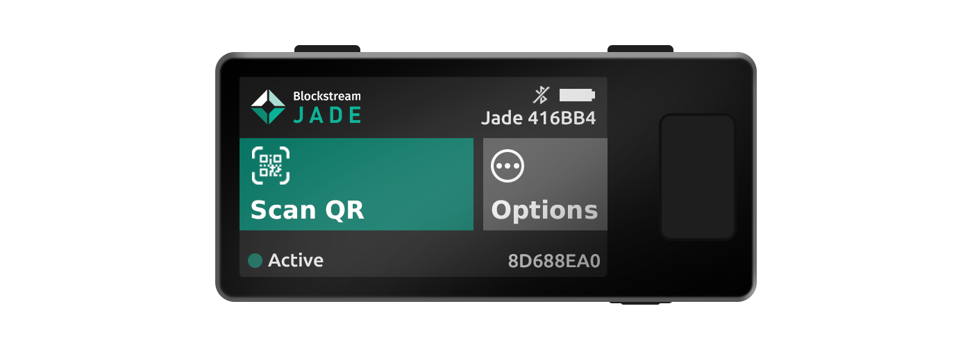 - PIN を使用して Blockstream Jade のロックを解除し、画面の右下隅にある8 文字のフィンガープリントを書き留めます(例: 8D688EA0)。